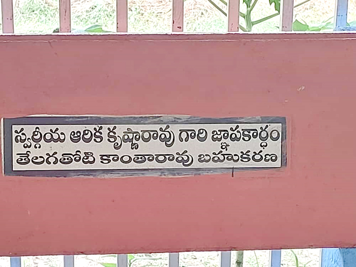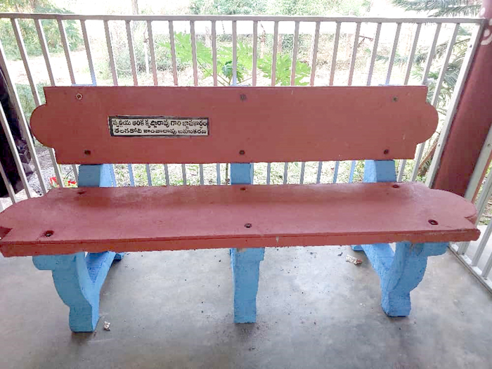 This bench is gifted by Adivasi Krishna Rao memorial charitable trust to Vanamitra on the occasion of 3rd death anniversary of Adivasi Krishna Rao.